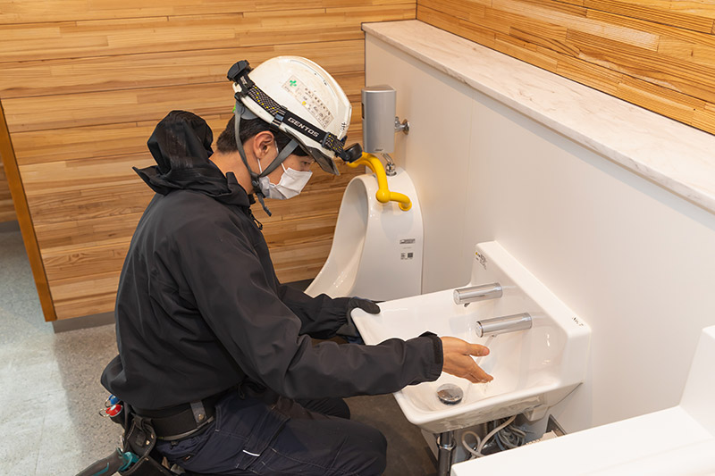 快適にトイレが利用できるように、動作確認・給排水管の漏水がないか及び器具の取付状態を確認しています。