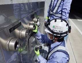 トンネル火災時にトンネル防災設備の機能が常に良好に発揮できることが要求される為、通報設備・警報装置・消火設備・避難誘導設備などのトンネル等級に応じた防災設備のメンテナンスや、水噴霧放水試験などの防災訓練を実施しています。